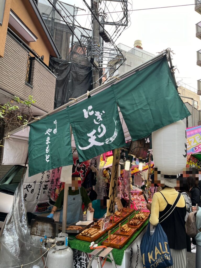 ここ浅草・鷲神社で行われる酉の市では屋台や露天が数多く並ぶのでここを楽しまなきゃ損ってもんですよ!(笑)