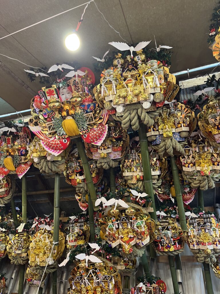 綺羅びやかな熊手が沢山並んでいます