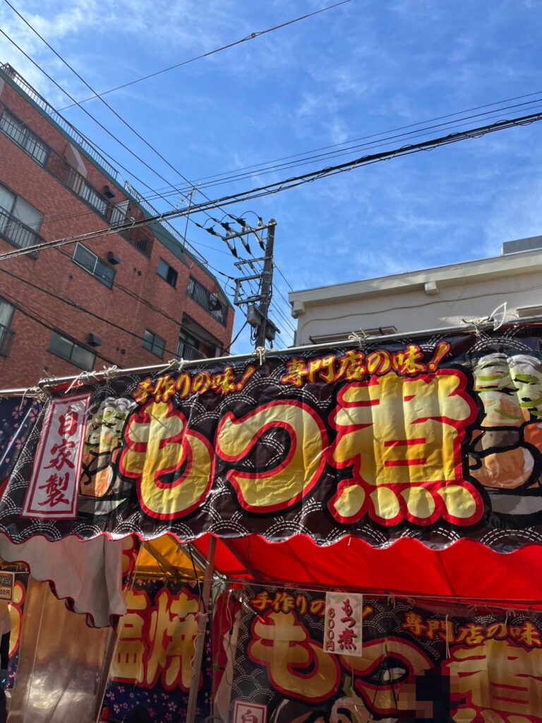 もつ煮の屋台があったり