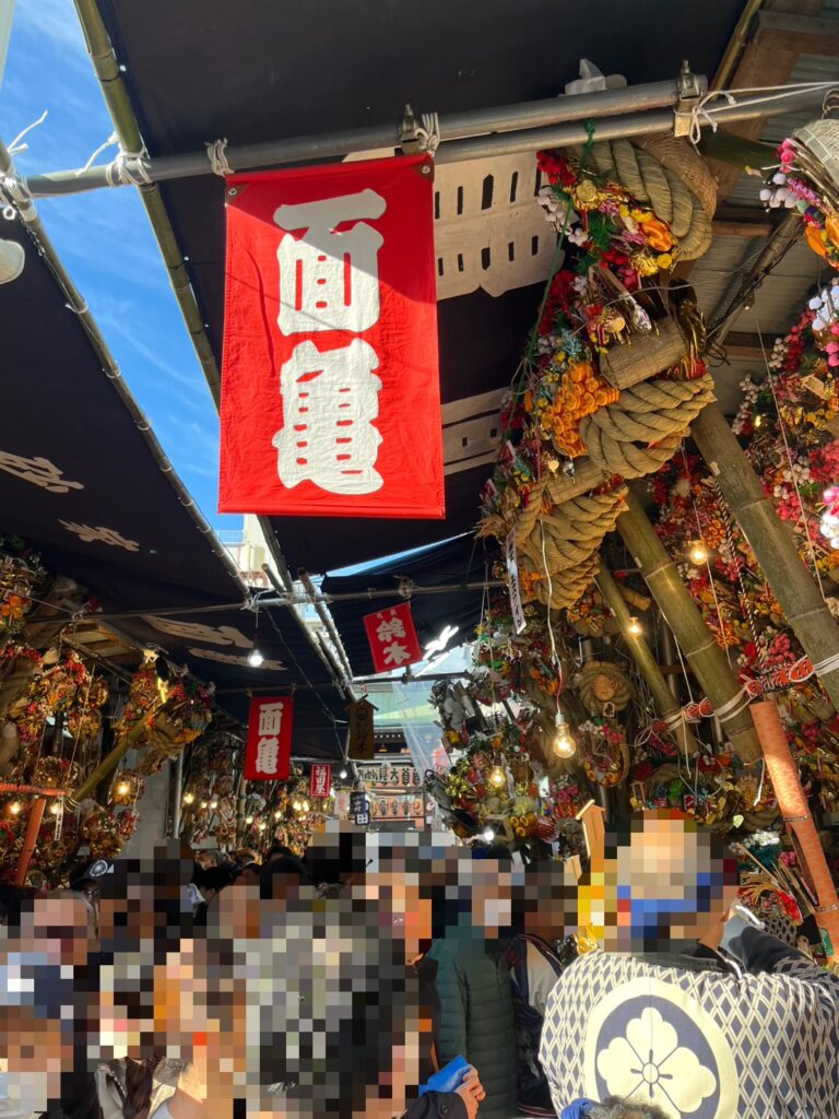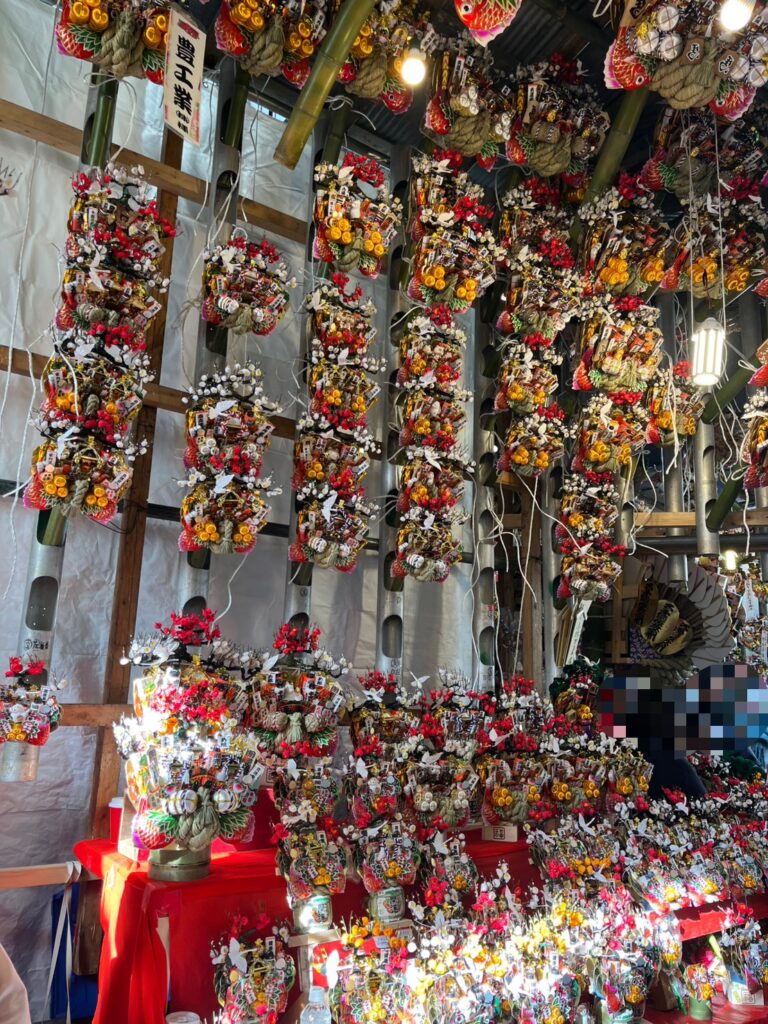 彩り豊かな熊手と活気あふれる境内へ