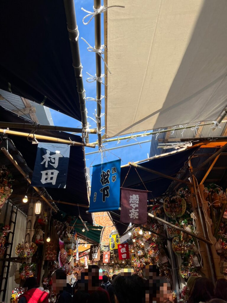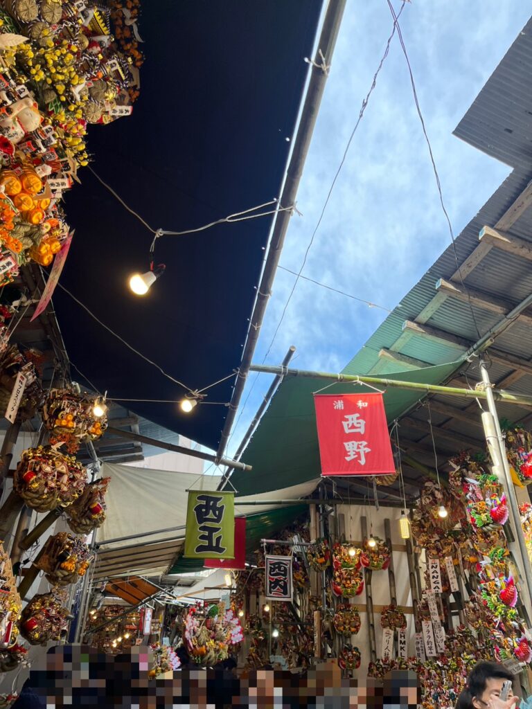 こんな感じで並んでいる両脇には熊手の屋台がズラーッと並んでいます